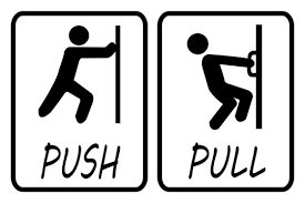 Parece que não importa o nível do seu inglês, uma porta escrita "push" sempre é um desafio para os brasileiros. Porque? Push, embora tem um som que lembra muito o "puxar" de português, na verdade significa "empurrar" em inglês. Mas mesmo que você saiba as equivalências de push e pull, parece que por instinto, queremos sempre puxar uma porta escrito push.